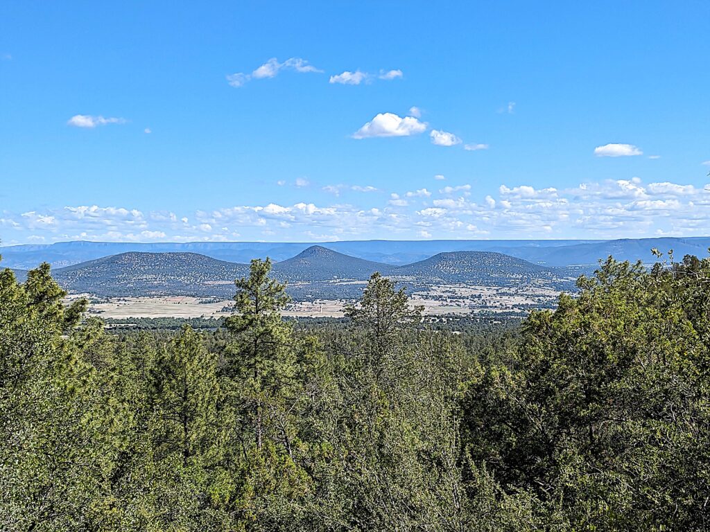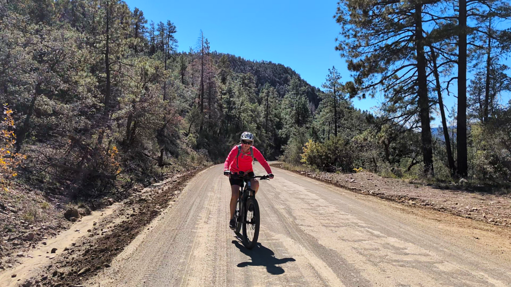 The 134 mile (with nearly 14K of elevation gain) section 5 of the Ride Across Arizona 2025 stretches from the community of Forest Lakes to Big Lake. Starting from Forest Lakes you’ll once again jump on the Rim Road (FS 300) for a mostly downhill 60 mile cruise along arguably the roughest section of Ride Across Arizona. Geologists refer to this area as “Rim gravel”, referring to ancient gravel deposits often found on high plateaus in northeastern Arizona which are remnants from past erosion due to the uplift of the Colorado Plateau. From there you’ll jump on the pavement as you make your way through Show Low but not before you pass the Travis Walton abduction site. Forestry worker Travis Walton was allegedly abducted by aliens near RAAZ mile 442.5 on November 5, 1975 in the Apache–Sitgreaves National Forest near Heber, Arizona. Great camp spot too! Once in Show Low there are numerous places to dine and stay (campgrounds, hotels) plus a bike shop. After leaving Show Low you’ll hook up with the Maverick Off-road Trail and eventually on to FS-267/N3566. This is where the fun starts as you’ll begin the climb up to Green’s Peak and at an elevation of 9,572.8 feet the highest point of the entire ride. The views are astonishing and you’ll most likely have the chance to cool off sitting on a drift of snow that has not yet melted! After Greens it’s a ripping downhill to the next slight climb and before you know it you’ll be at Big Lake. There are five campgrounds, showers and a store at the lake. As we get closer to the May start I’ll contact them to get the store hours and the status of the campgrounds.