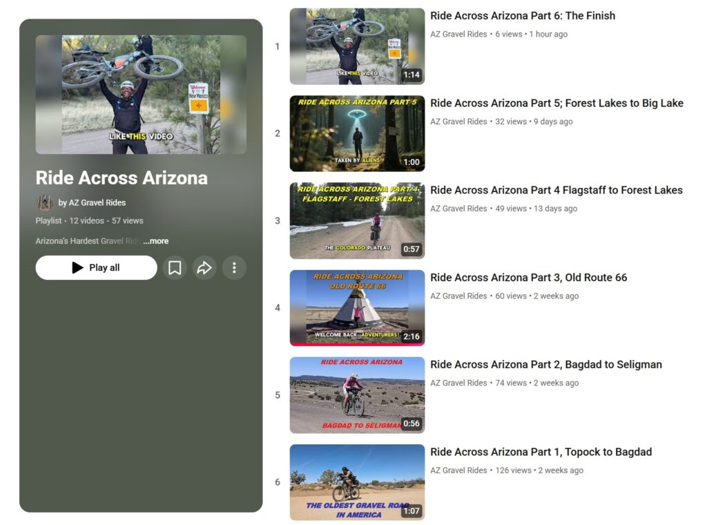 If you want your finish time recorded on our website you’ll need to use Trackleaders. This is strictly voluntary, I just don’t have the time to interact with each rider and then verify and record each time. More info can be found on their website: http://trackleaders.com/ They are not affiliated with AZ Gravel Rides or Ride Across Arizona. You can sign up for their tracking service starting March 31st 2026. The sign up link for Trackleaders will be posted here and at azgravelrides.com.