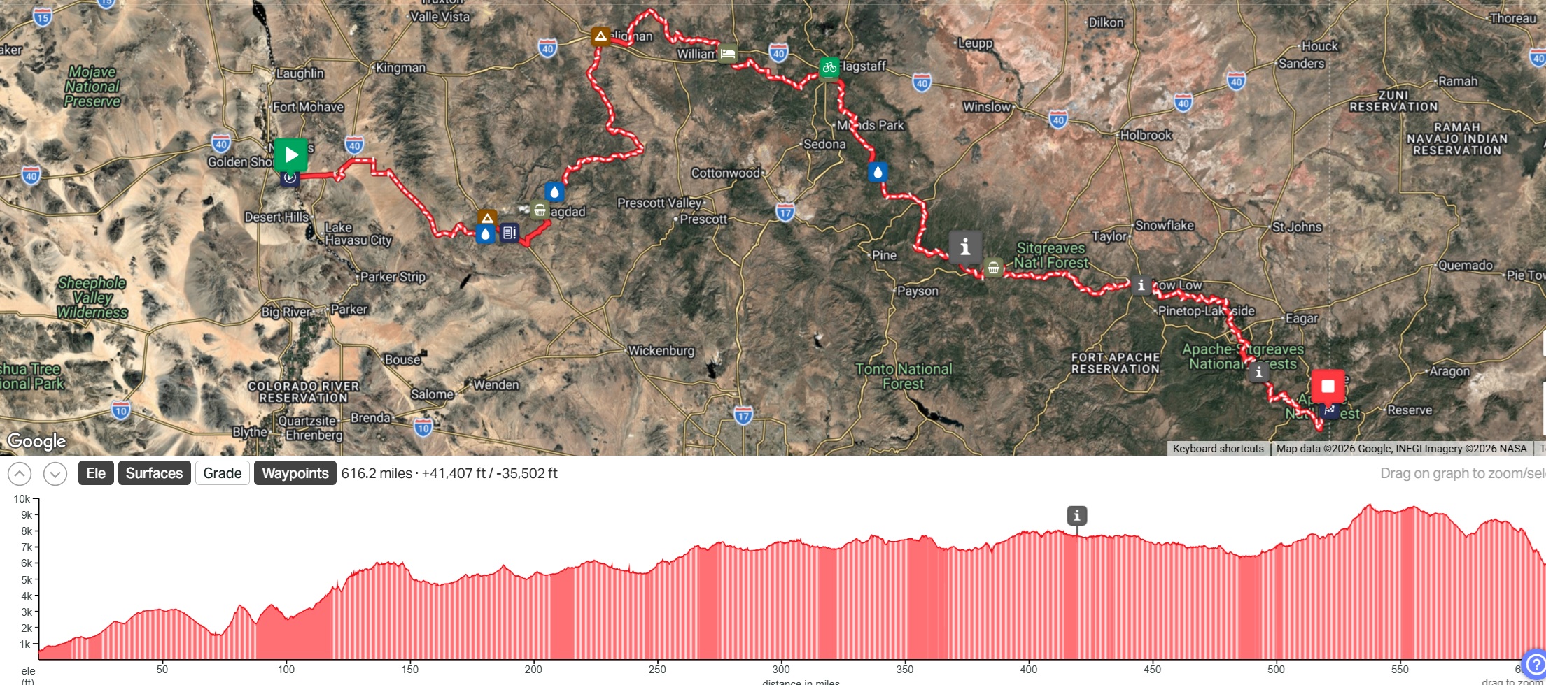 All updates for the route will be posted here and here only! If you have anything you would like to share (water sources, camp spots, etc.) please forward them on to us at RIDINGAZGRAVEL@GMAIL.COM and we’ll get them shared here.